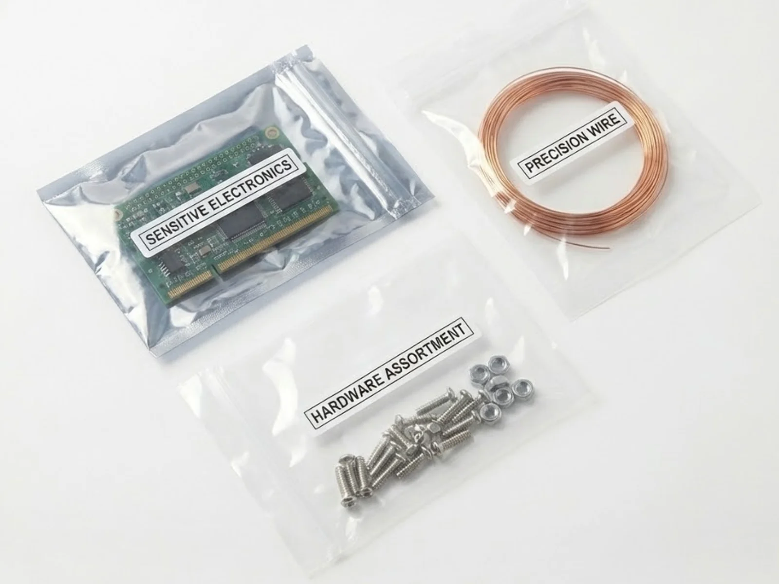 Nozzle-type external vacuum sealer without chamber limitations. Designed for oversized industrial products like PCBs, hardware, and textiles. Compatible with anti-static bags.